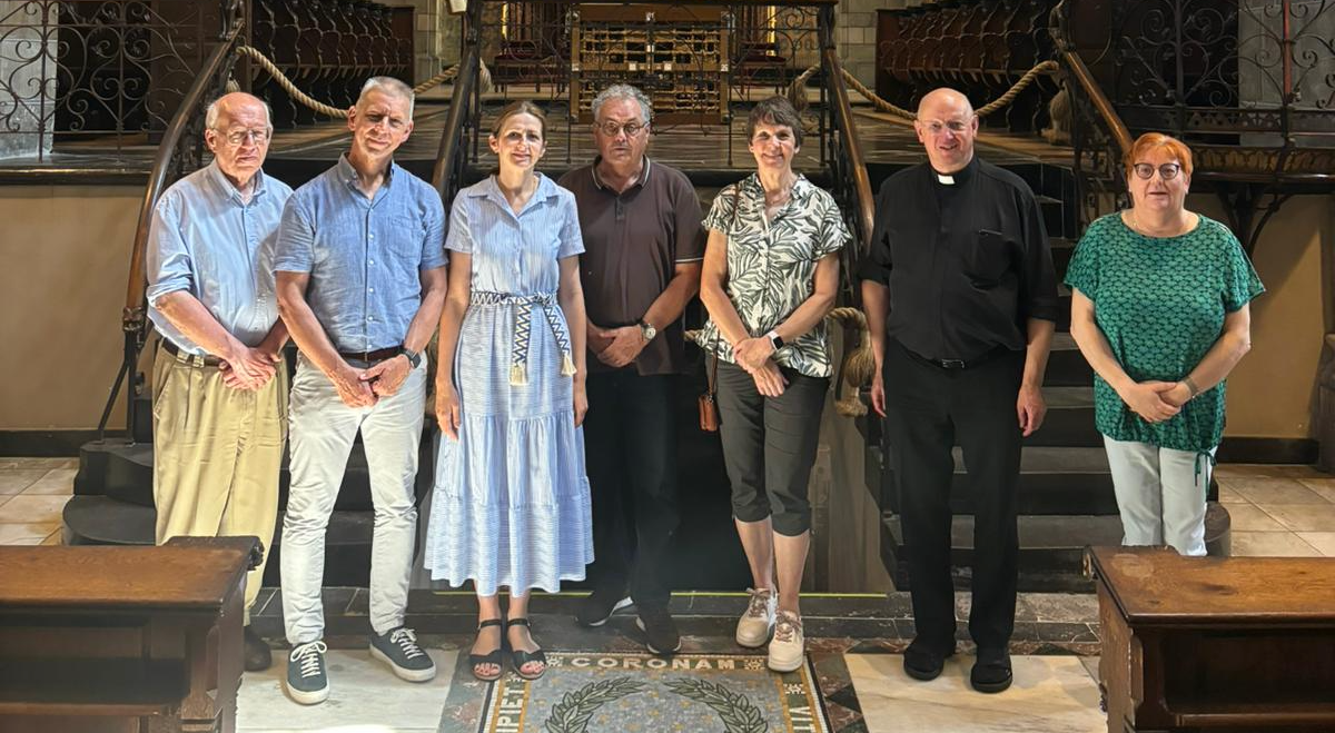 Van links naar rechts: Math Hoeberichts (penningmeester), Jos Fuchs (vice-voorzitter), Anna Damoiseaux (missie & communicatie, afgetreden eind 2024), John Bude (gebouwen beheer), Vera Aarts (secretaris), Pastoor Kenis (voorzitter, pastoraal & missie), Margo Meijs (pastoraal)